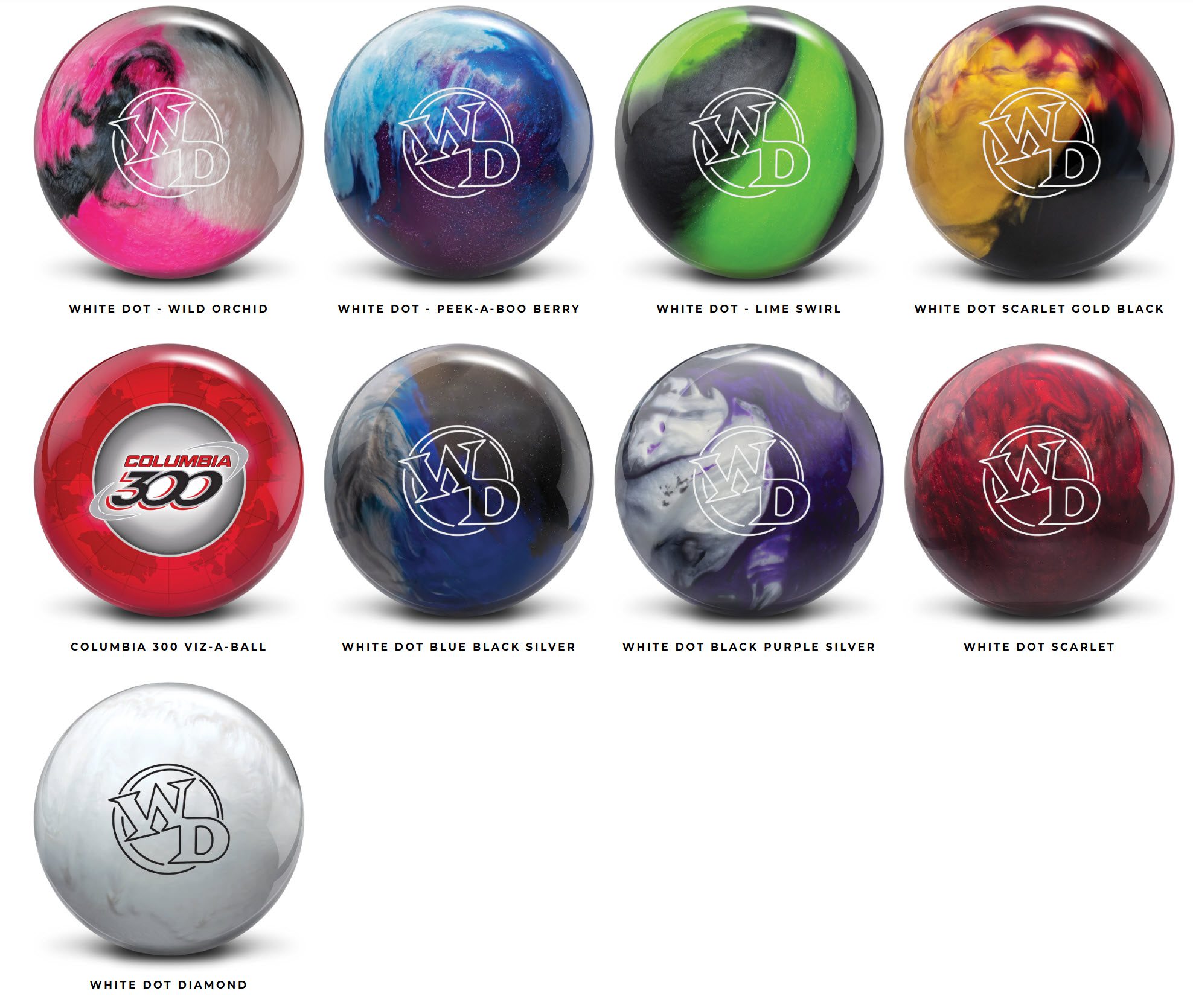 The Columbia Whit Dot bowling balls have become the ball of choice for a spare ball by many bowlers. They are polyester shells with a simple flip block. These balls can hook on very dry lane conditions. However, for the most part they are used when shooting for single and some multi pin spares. If you do not see a ball in the weight you desire it most likely means it is not availble at this time/ The Columbia Logo visaball is included, but is more expensive than the standard White Dot series.